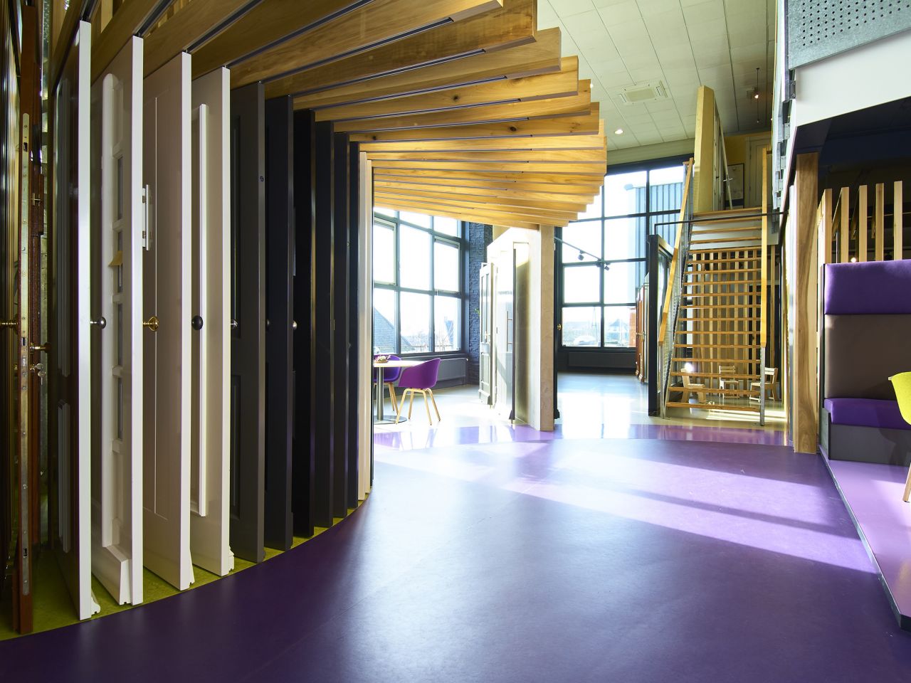 Compleet restylen deurenshowroom. Ontworpen door binnenhuisarchitect. De keuze van presentatie, kleurstellingen en meubels geven deze showroom een moderne uitstraling.